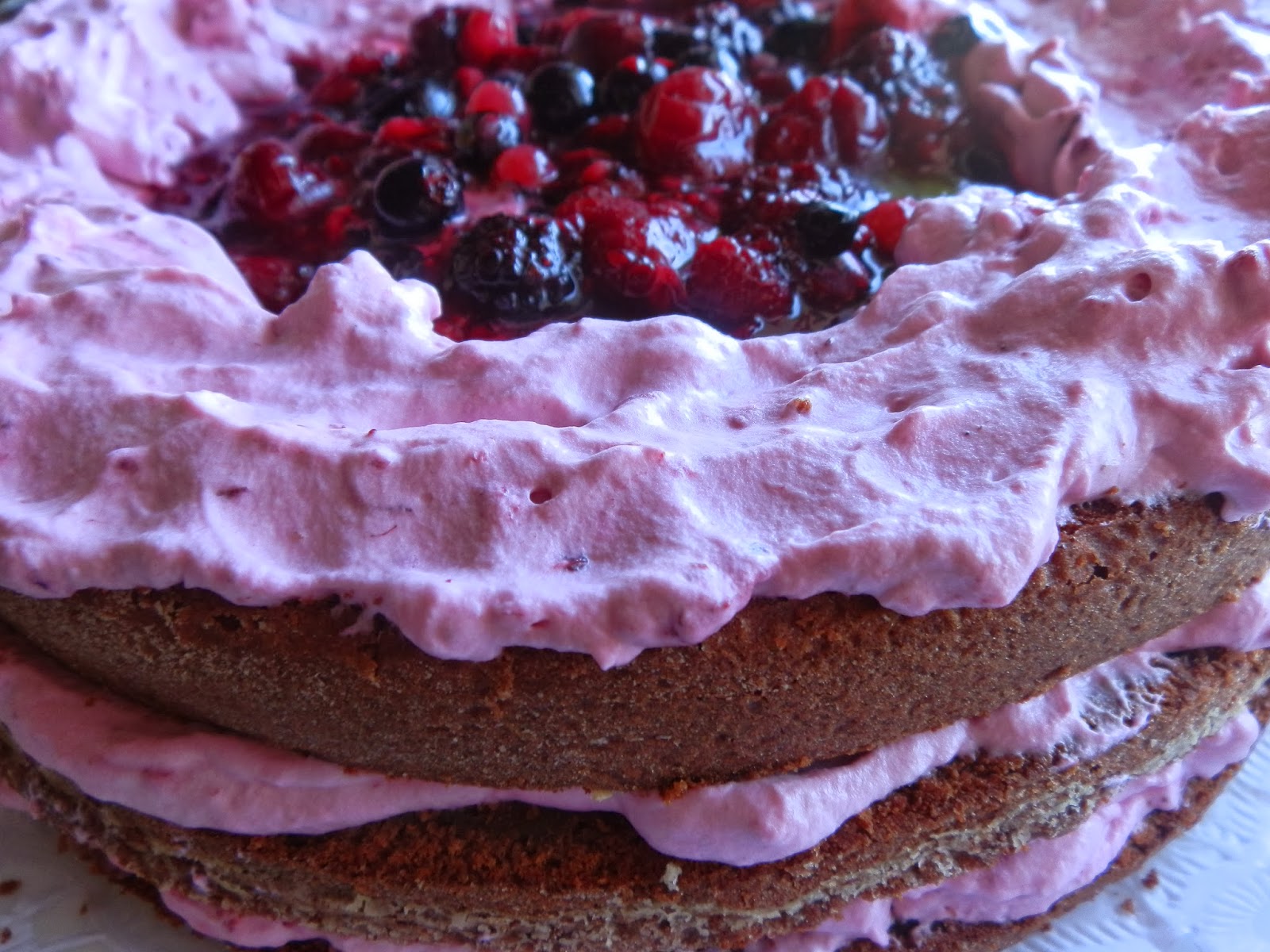 For the filling, beat the cream until it whipped then add the berries.