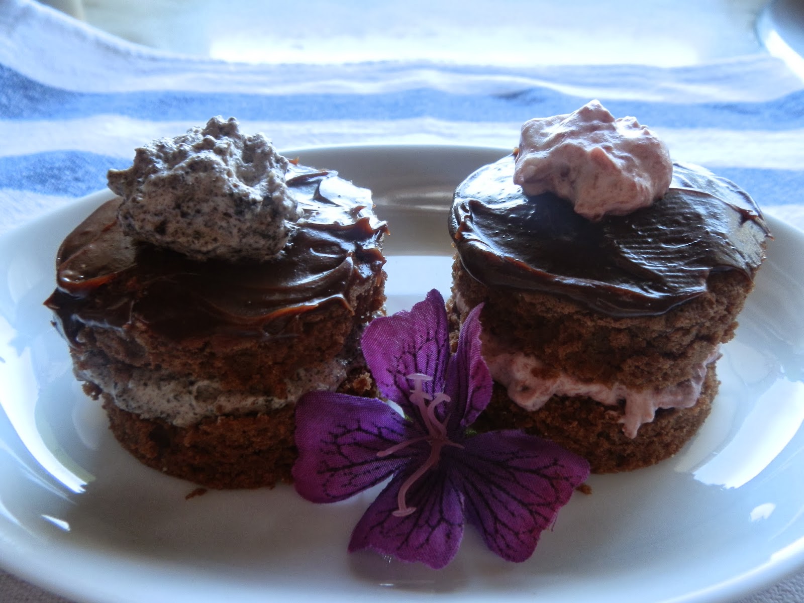Além dos biscoitos e das bolachas, fiz uns bolinhos de chocolate com recheio – ora de Oreo ora de morango.