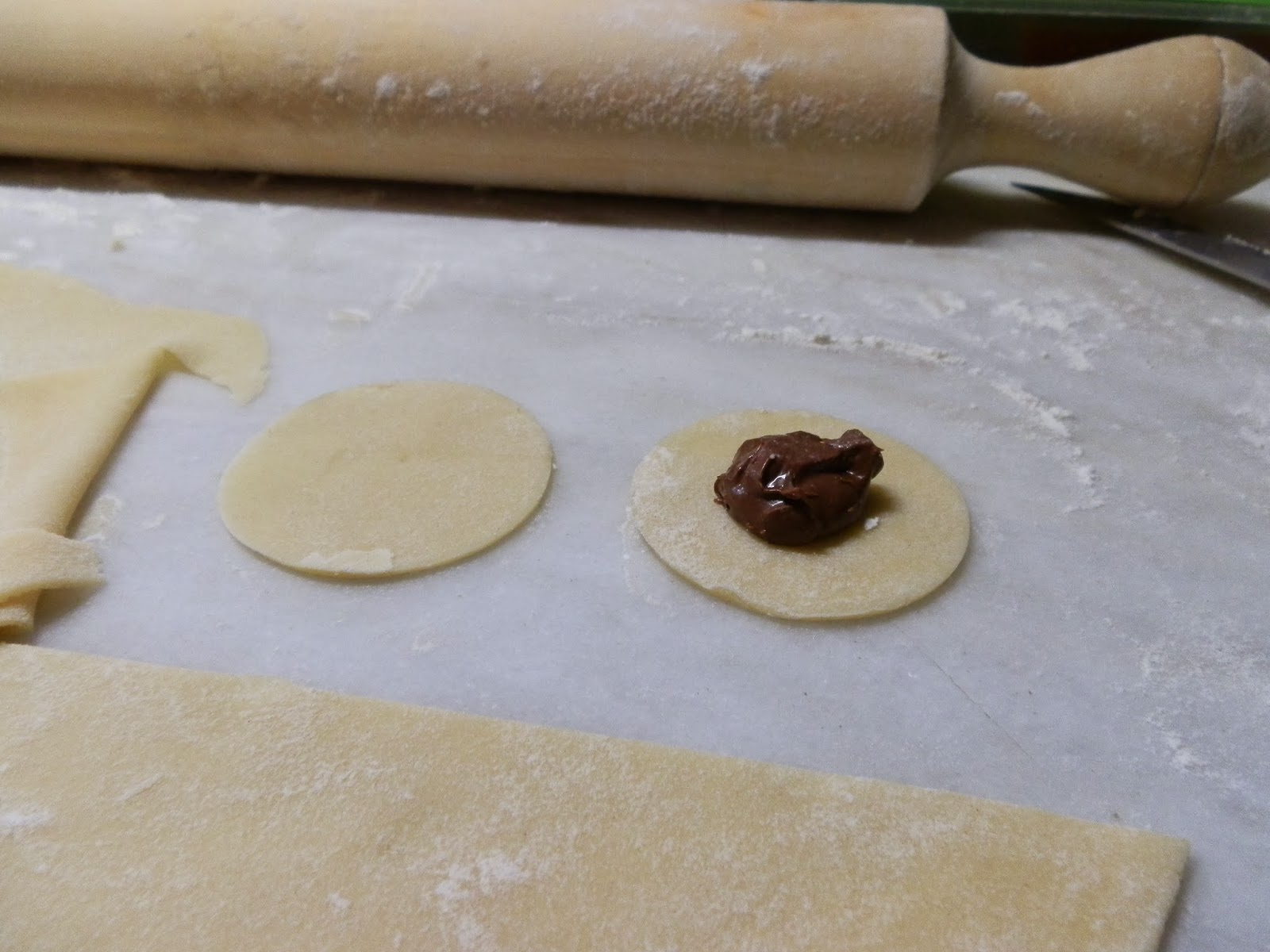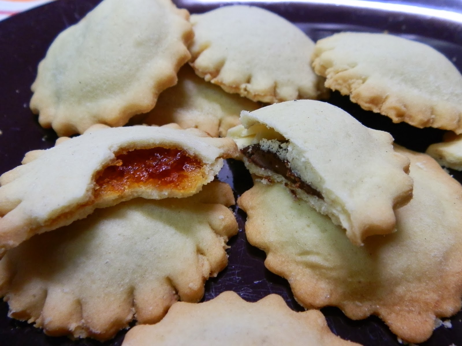 Hoje pus-me a inventar e decidi fazer umas bolachas recheadas, umas com Nutella, outras com doce – o resultado é o que se vê: