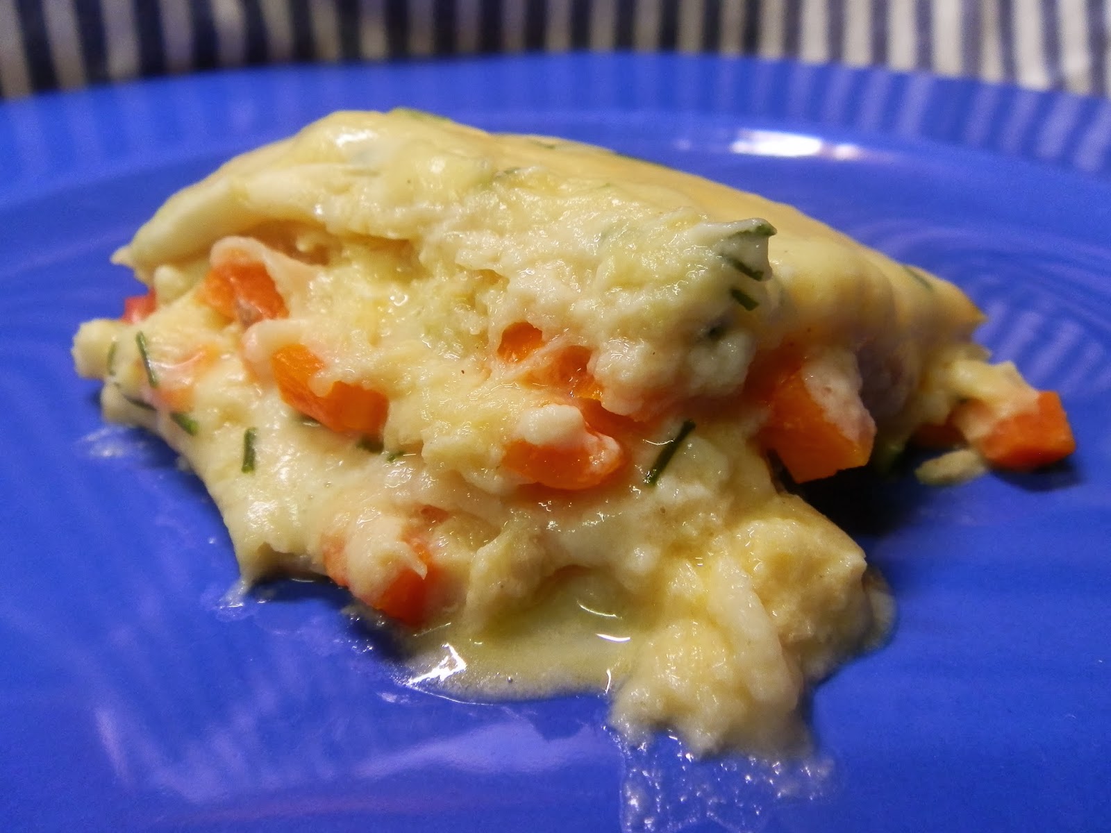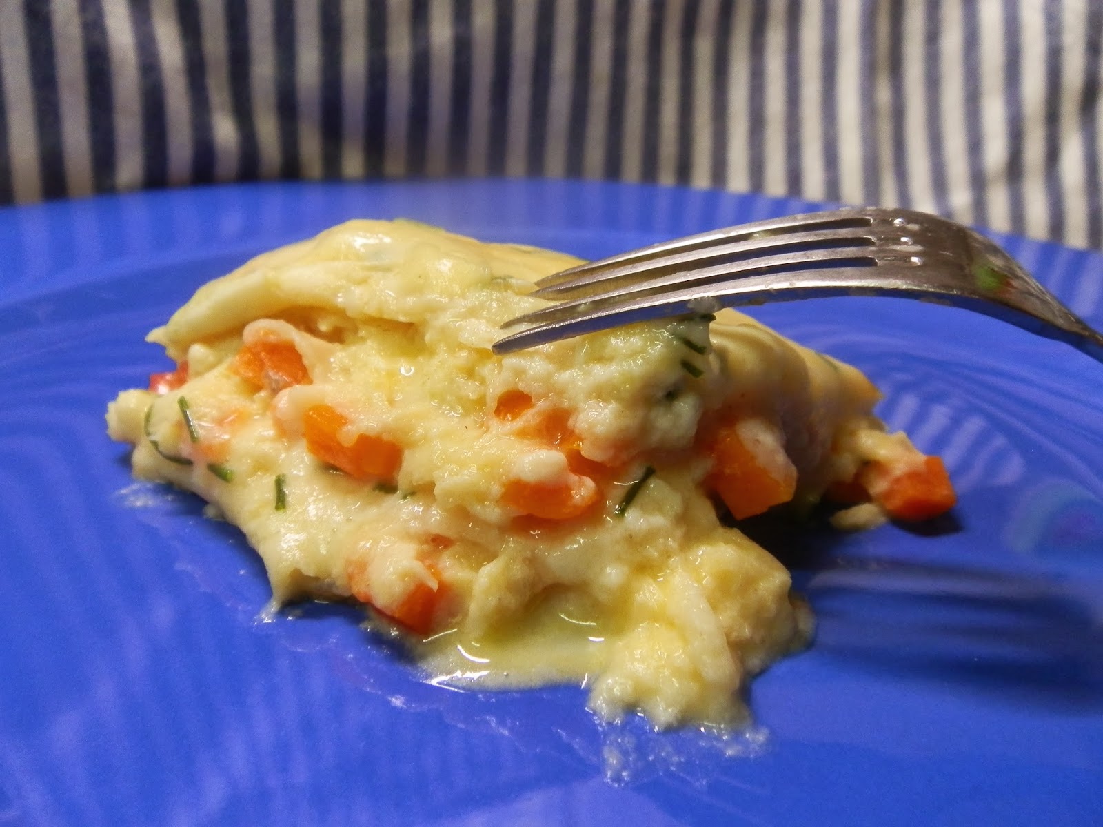 Para o recheio aproveitei umas sobras de peixe cozido – convenhamos, o peixe acabado de cozer é bem, mas depois já se sabe que vai definhar dentro do frigorífico até à exaustão.