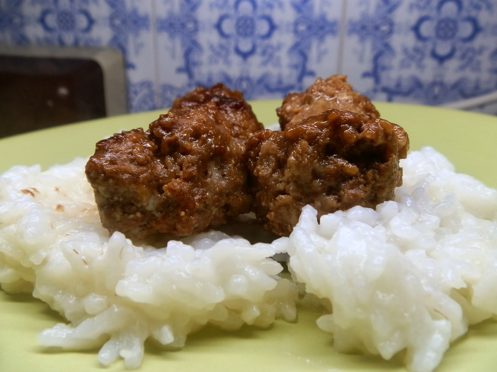 Embora as fotos estejam vá, um bocadinho más, não fazem jus às almôndegas em si, que ficaram muito saborosas(é que ainda não consegui atinar com a luz para tirar as fotos à noite).
