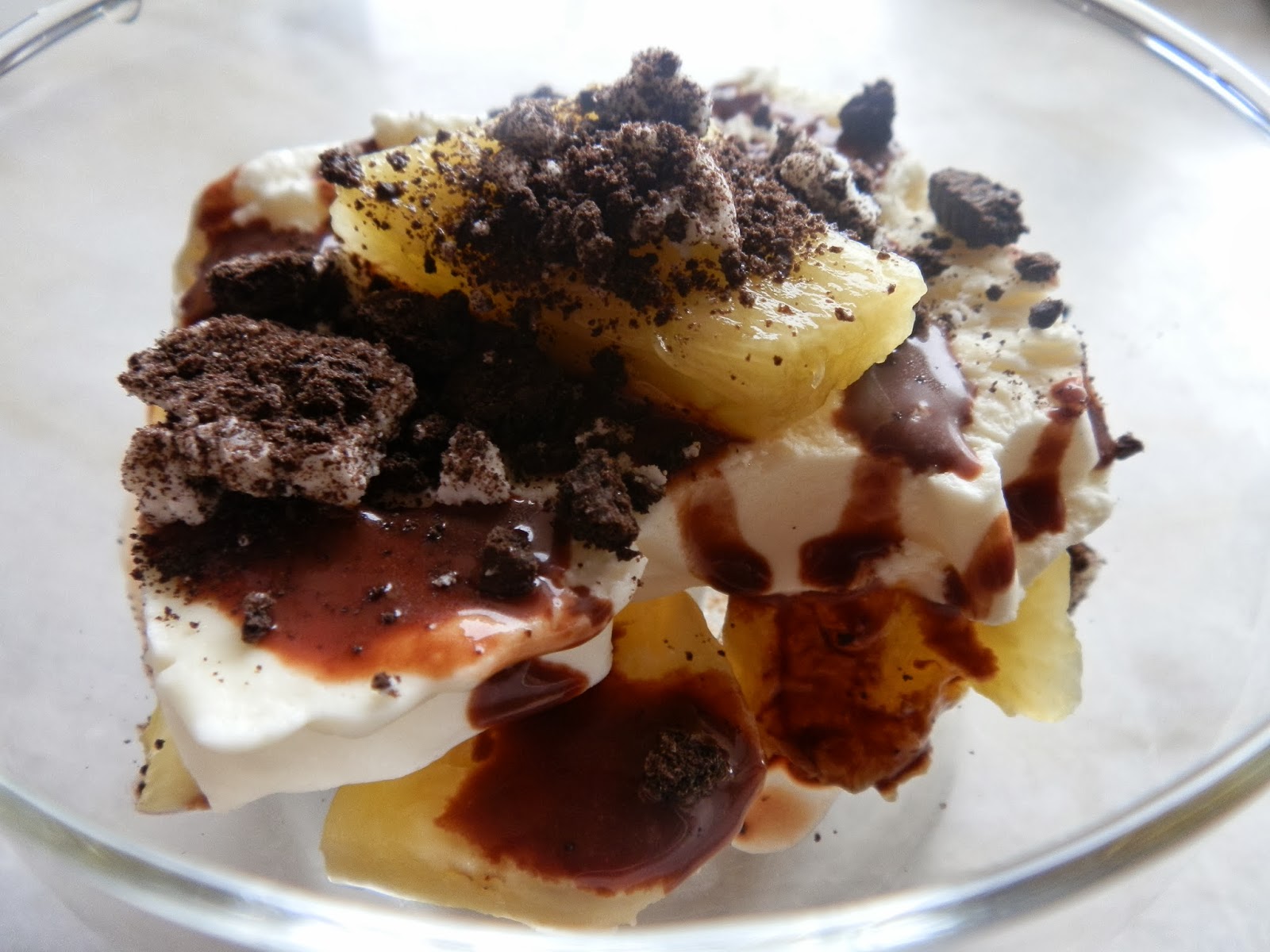 Hoje, fico-me por uma sobremesa – não tem um nome especial, foi apenas uma criação para fazer uma pausa no estudo, e que não ficou nada mal. Intercalam-se camadas e assim nasce uma sobremesa rápida e saborosa 🙂